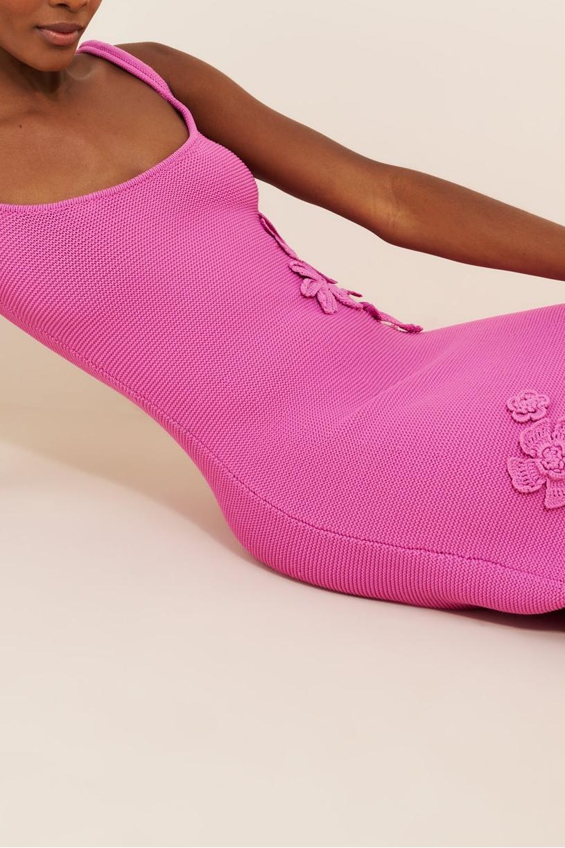 Pink Floral Knit Midi Dress